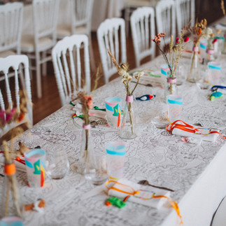 En travaillant main dans la main avec Mélanie et Stéphane, elle a su relever ce chouette défis haut la main ! Je vous laisse admirer le résultat : des couleurs pétillantes, la papeterie parfaitement dans le thème, des pass VIP en guise de marques places, un bar à Vinyle et un dancefloor ouvert jusqu'au bout de la nuit, tout y était !